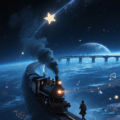美しい水玉の中のイルカ&綺麗な月夜と海の幻想的な光景とドルフィン