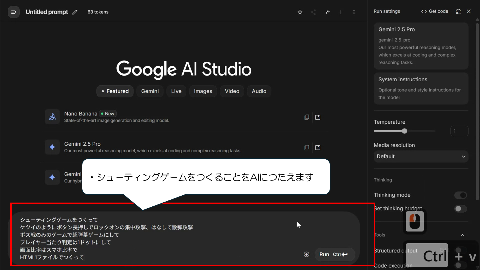 まずは Google AI Studio(Gemini) を使って、