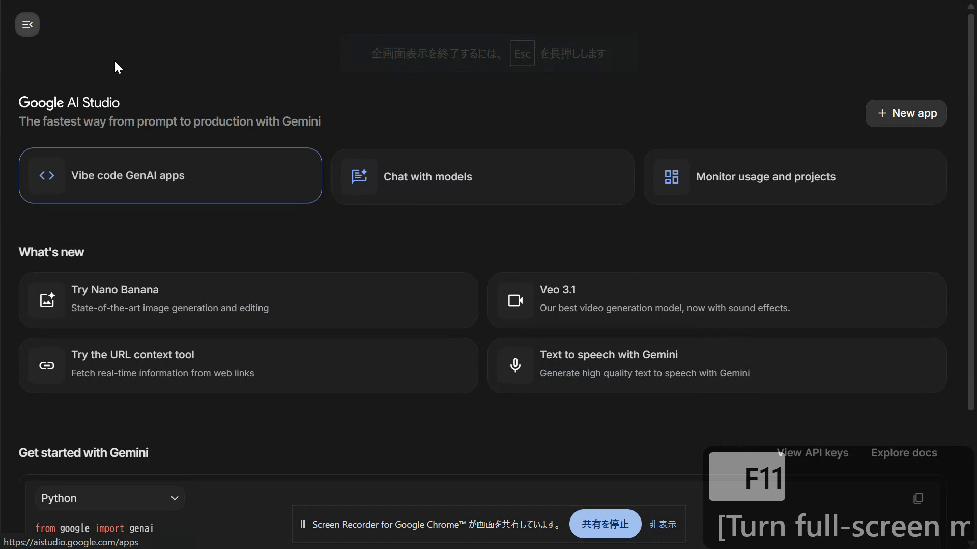 Google AI StudioはAIプログラム機能に力を入れているサイトです