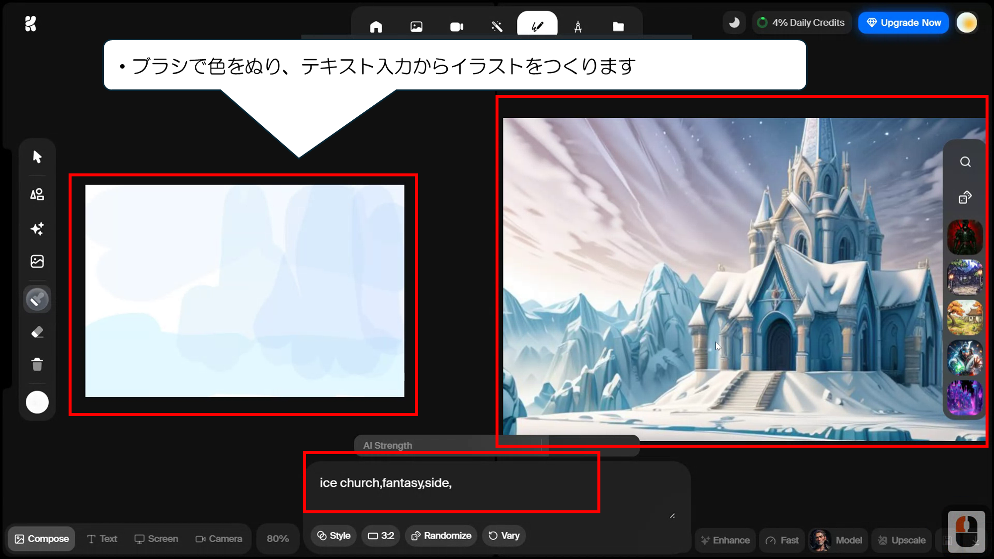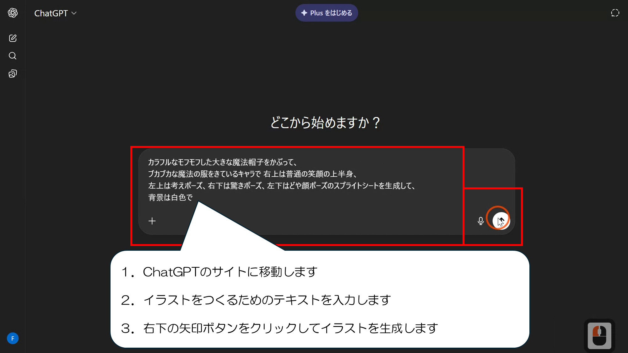 3.右下の矢印ボタンをクリックしてイラストを生成します