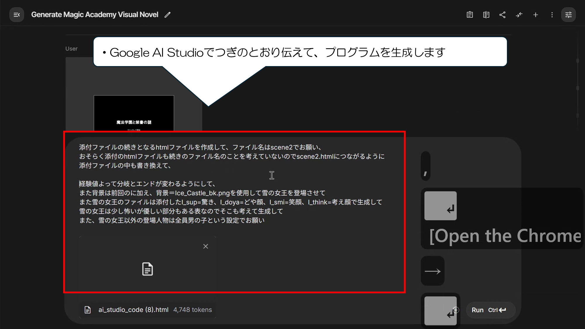 ビジュアルノベルのプログラムをAIでつくれば、使い方をおぼえる必要がありません
