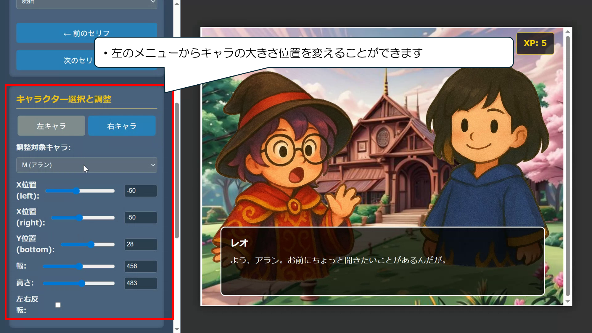 2.左のメニューからキャラの大きさ位置を変えることができます