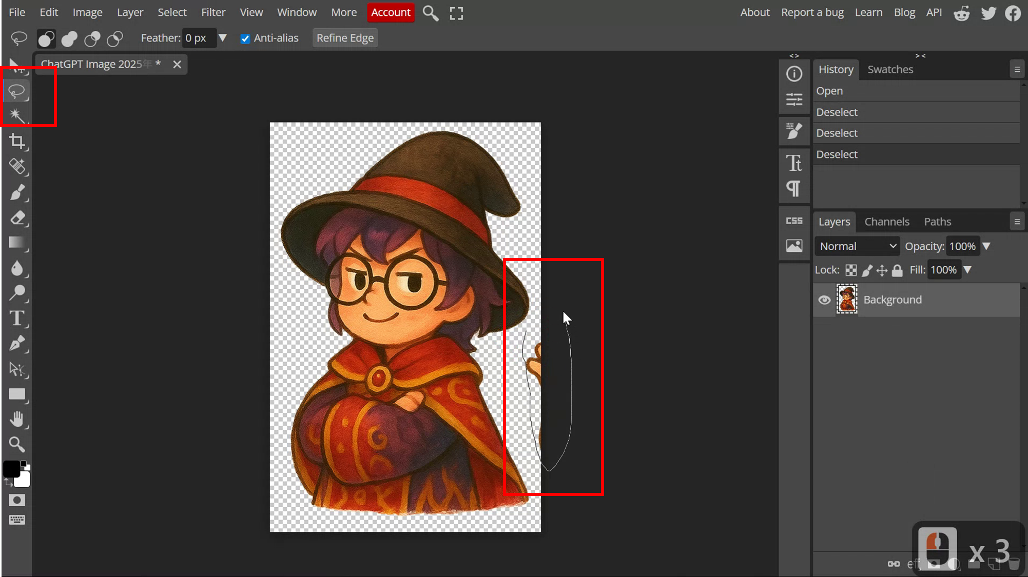 1.同じようにもう1キャラも「背景ボタン」から背景を削除します