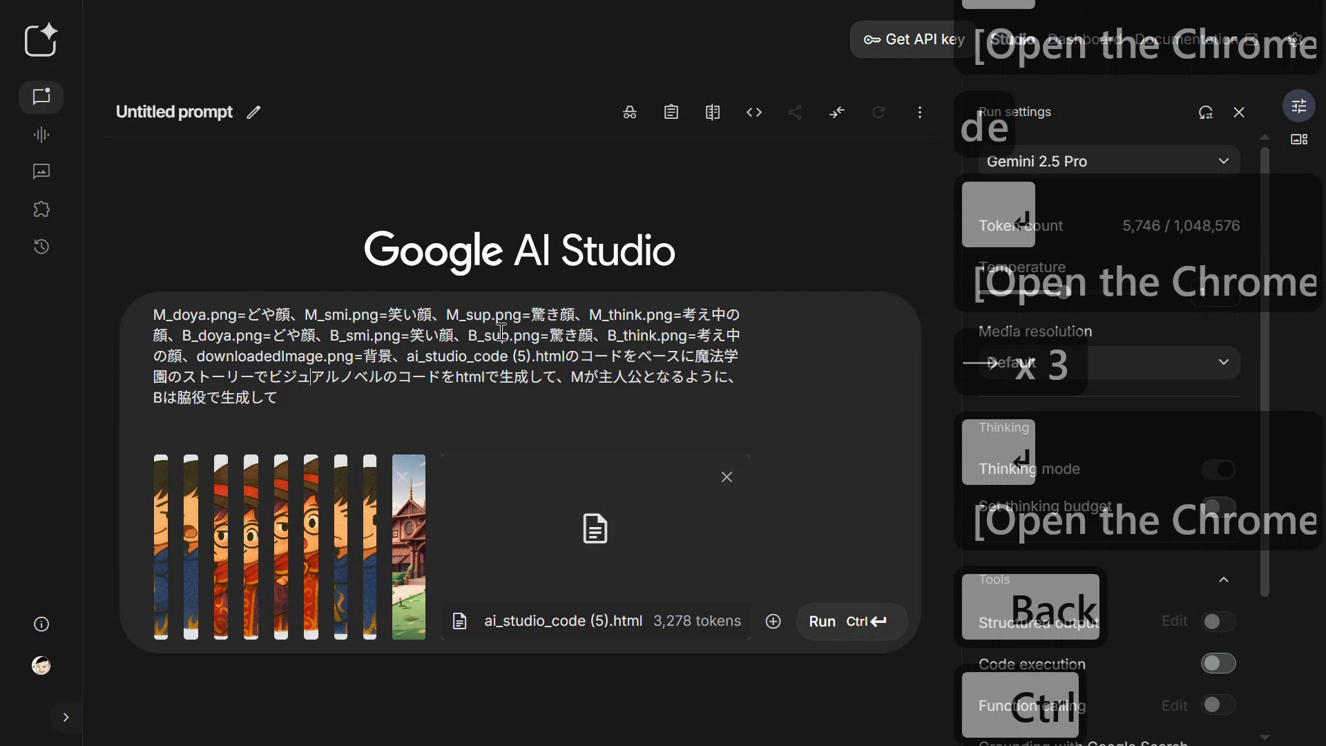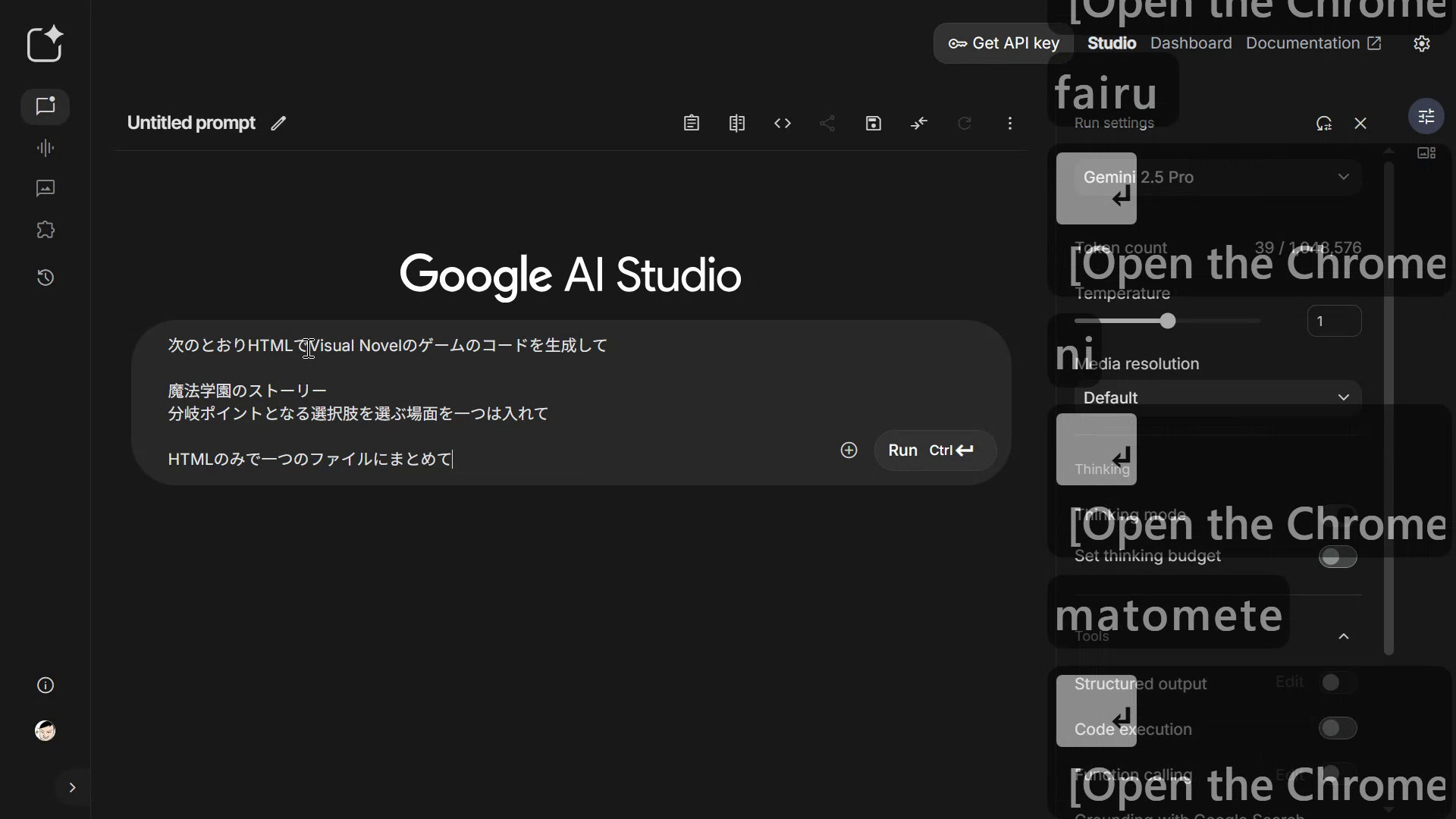 Google AI Studioのサイトに移動して、ファイルアップロードのボタンから