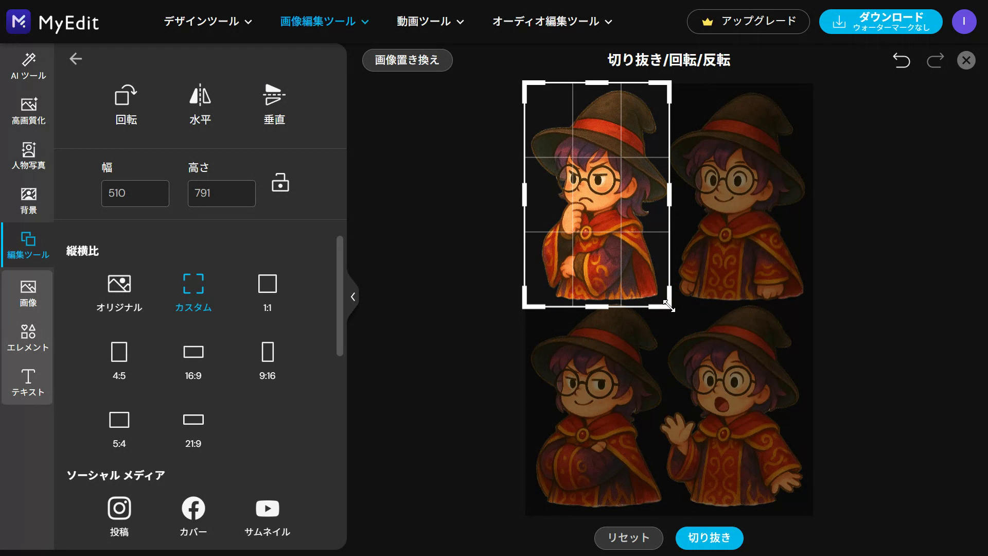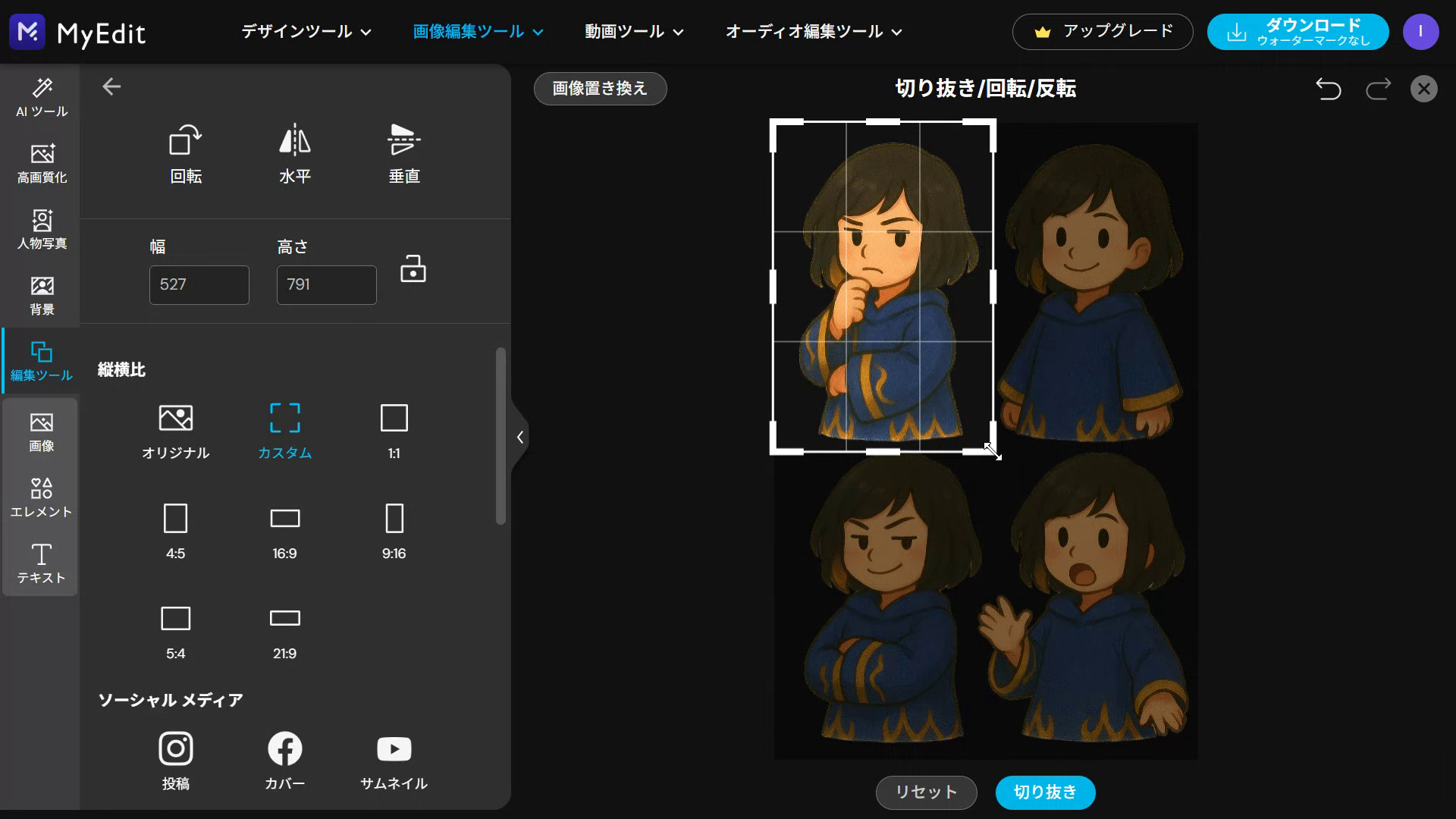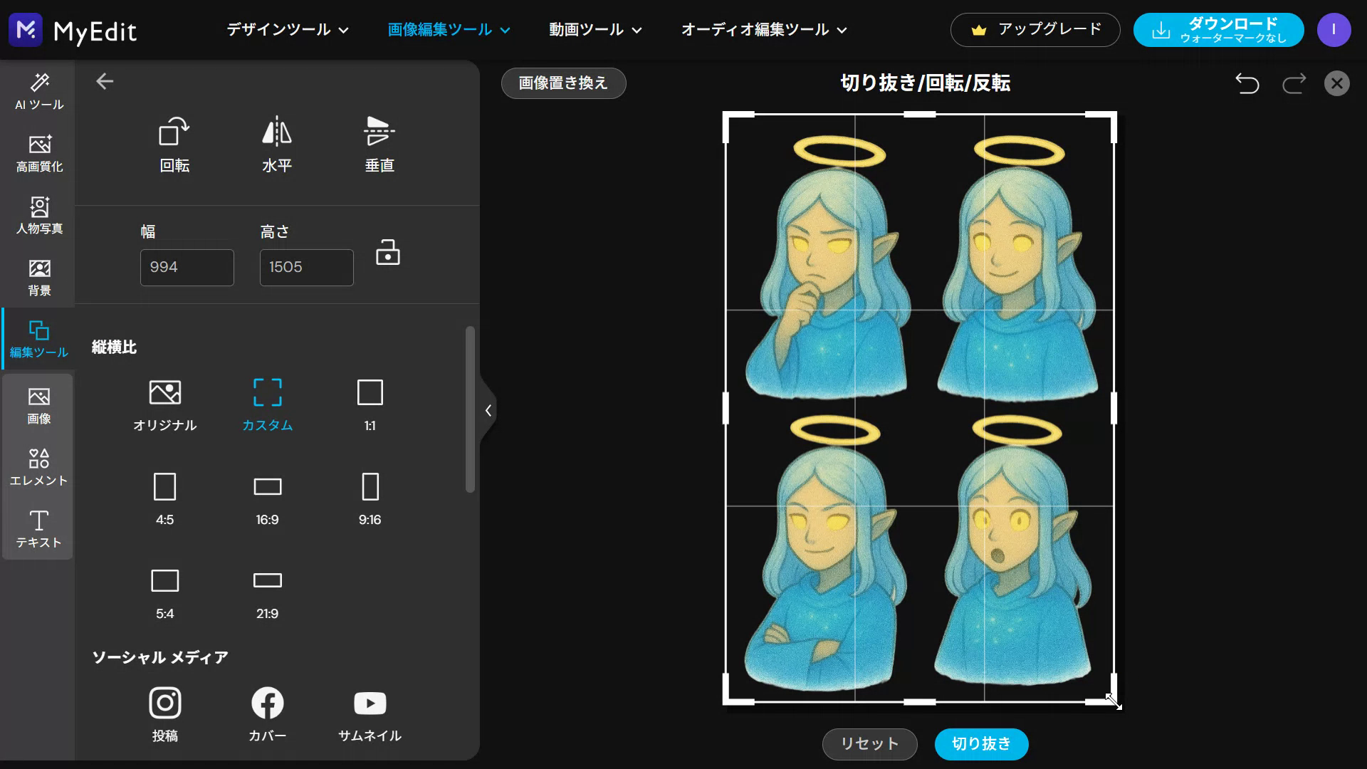 大きさを調整、切り抜き、ダウンロードを4人分おこないます