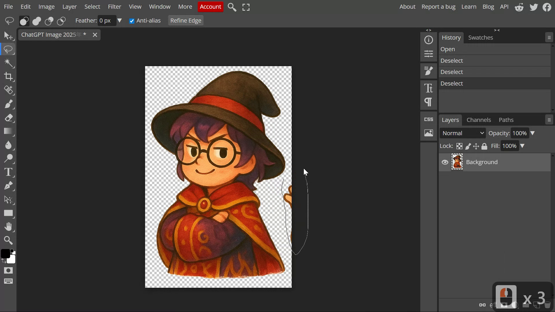 絵を読み込んだら、左の投げなわツールを使って部分削除します