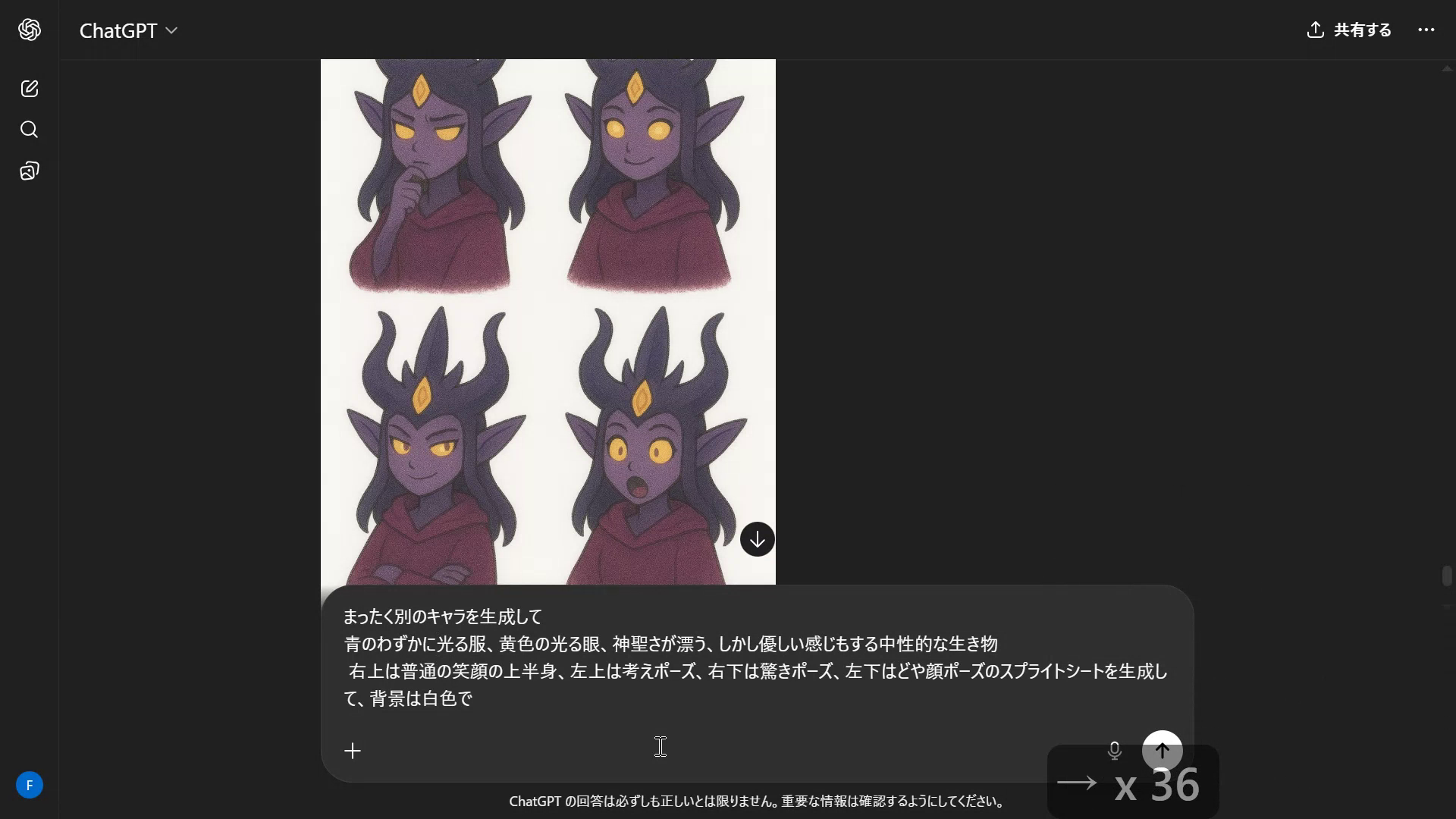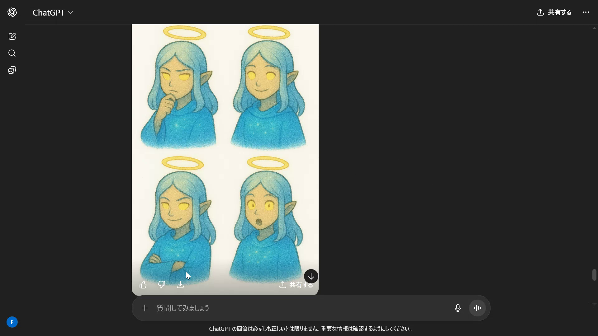 しっかり同じキャラで4つ分別々の表情で生成できました