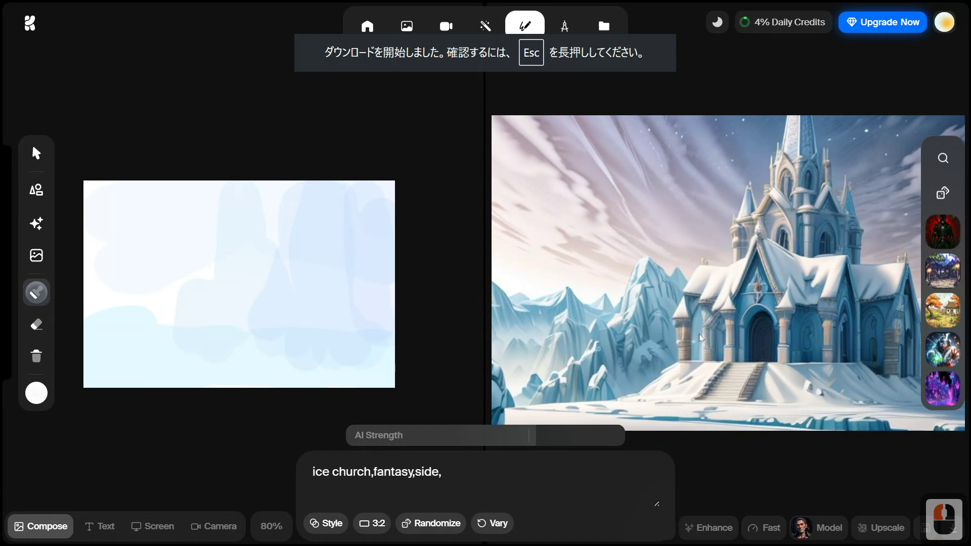 次はストーリーの続きに必要な雪の城の背景を生成します