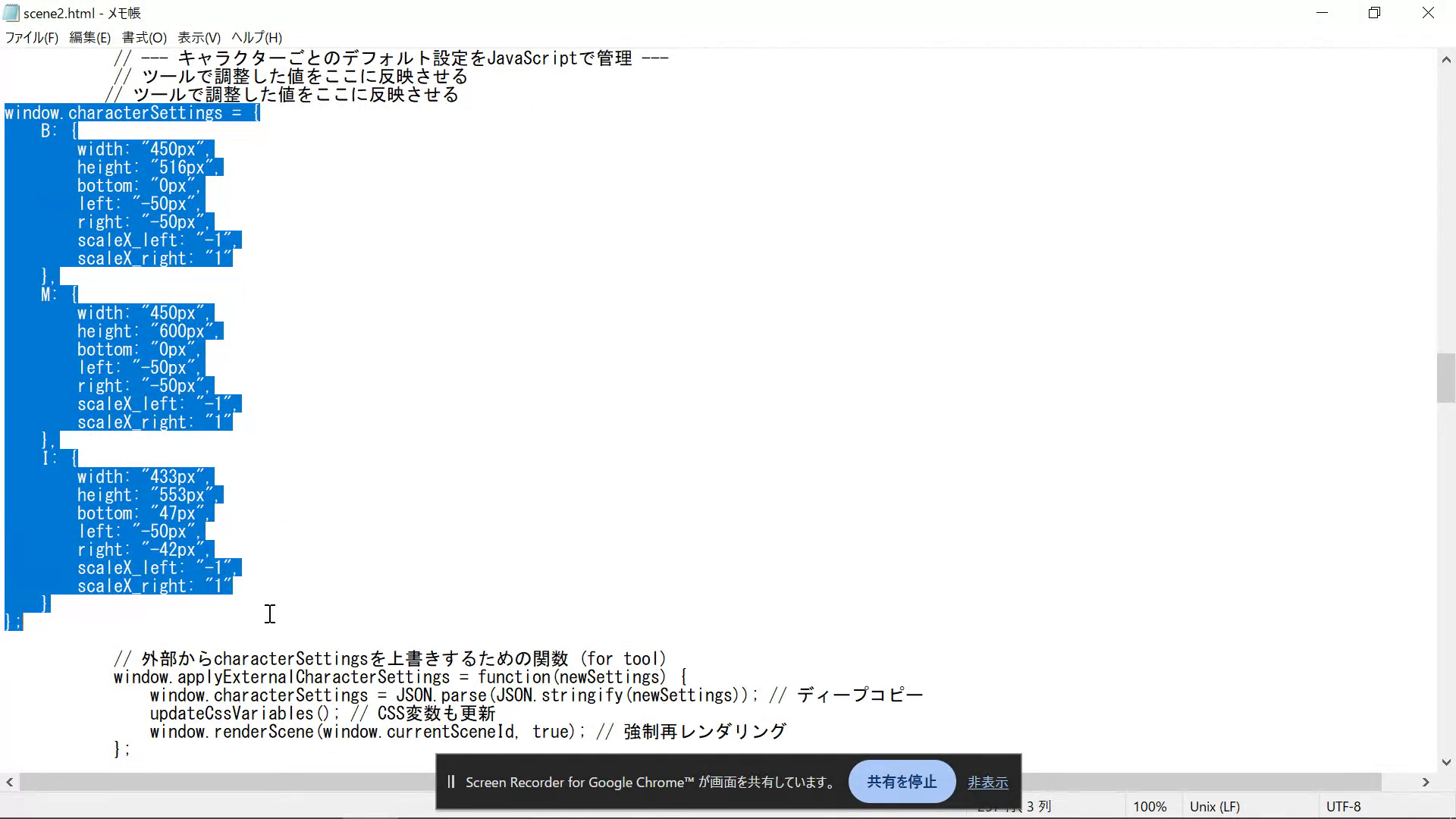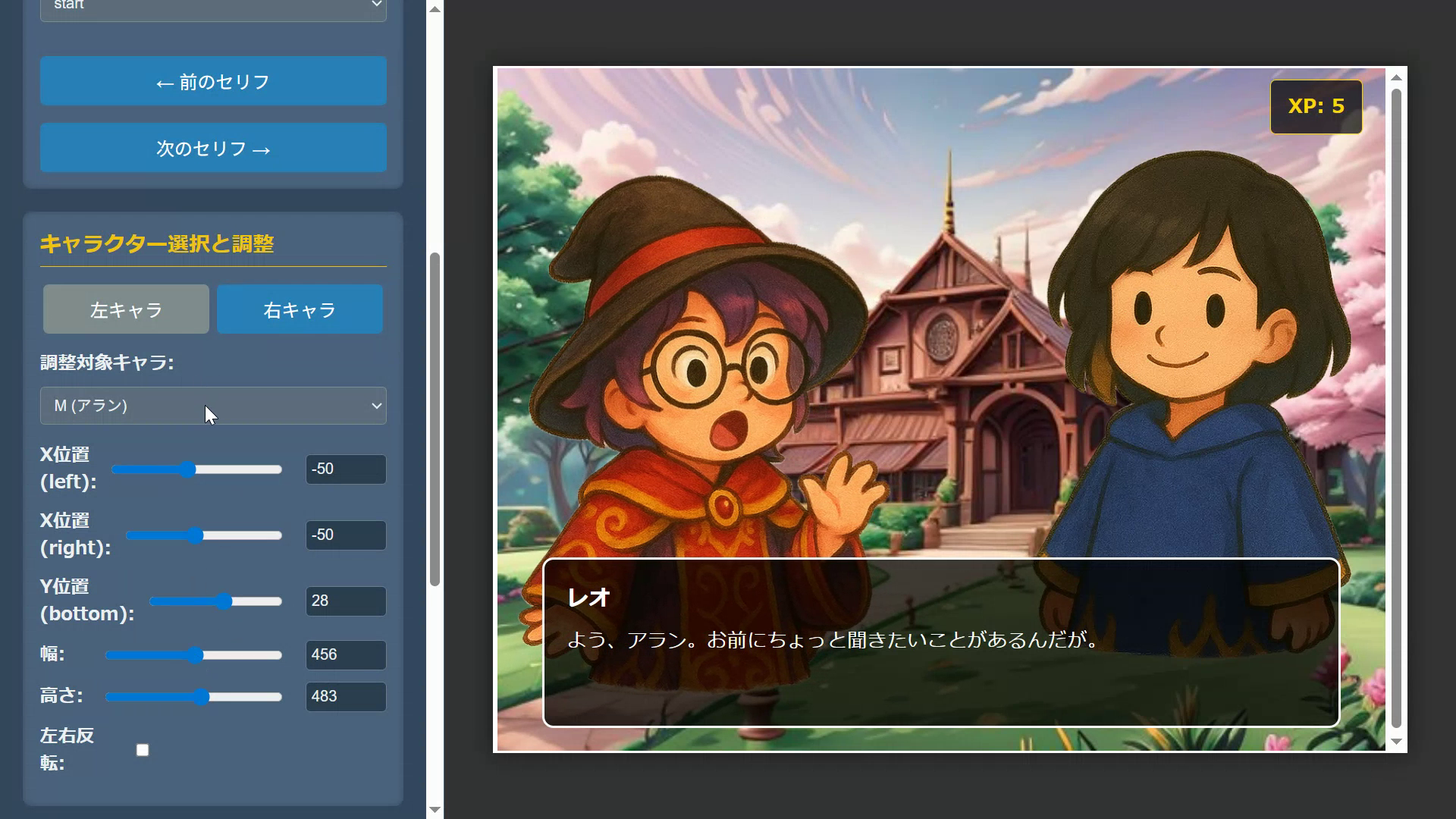 次は普通のノベルゲームツールでもかなり面倒なキャラの位置調整について