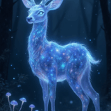 夜空に光るオーロラと田舎のきれいな川と蛍